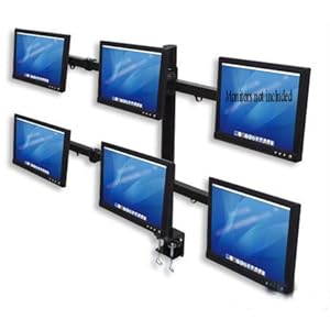 The house between the screens is fully adjustable. LCD Monitor Pole with Double-Link Swing Arms gives a stable and increased place for six flat-screen monitors to assist free up precious desk and work house. Its fully adjustable tilt, rotate, side-to-side, peak and tension surroundingss let a comfy and productive viewing position that helps scale back eye fatigue and neck and again pressure. LCD monitors may also be easily rotated around the pole to allow others to view displays and different multimedia displays from almost any course.Rugged Construction and Easy InstallationDurable die-cast aluminum development and a sturdy clamp present a snappy, simple and steady mount to a pc or different horizontal surface. VESA compliant and prepared to install with included hardware, there is not any need to drill holes into desks or counter tops.FEATURESSecurely dangles six LCD monitors above the computer to extend work space, make stronger visibility and minimize clutter -- forty eight" double-link swing arms optimize ergonomics and display views with separate tilt, rotate, side-to-side, peak and stress adjustments -- Die-cast aluminum pole with heavy-duty clamp mounts to personal computer or different surface -- Easy set upation best for administrative center, studio, IT network and security applications - no drilling required -- Meets VESA usuals - assists six screens up to 19" and 13 kilos each. SPECIFICATIONSFits 75 x 75 mm / 100 x 100 mm VESA-compliant displays -- Monitor weight capacity: as much as 13 lbs. each; 79 lbs. total -- Installs on horizontal surfaces up to three.5 in. thickDIMENSIONSHeight (pole): 28 in. -- Diameter (pole): 6.5 in. -- Arm size (radius): 21.5 in. -- Arm width (extended): forty eight in. -- Weight: 22 lbs.